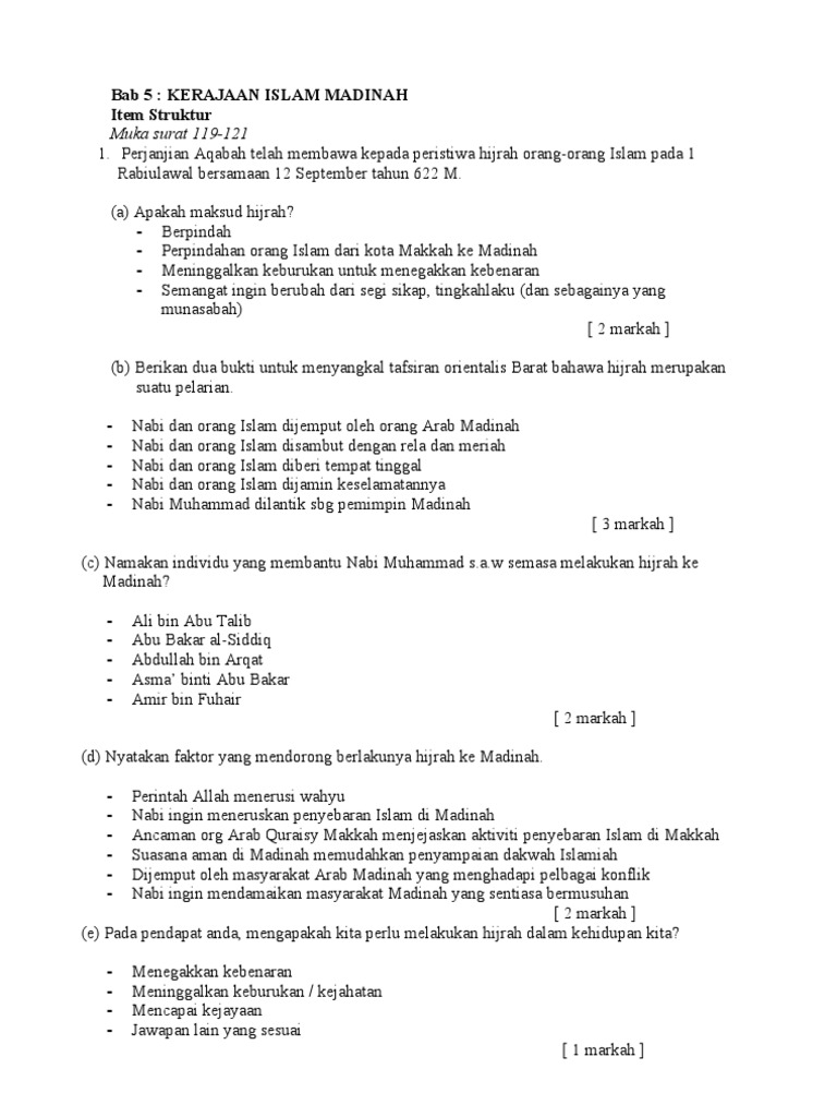 Skema Jawapan Kerajaan Islam Di Madinah Dan Contoh Soalan